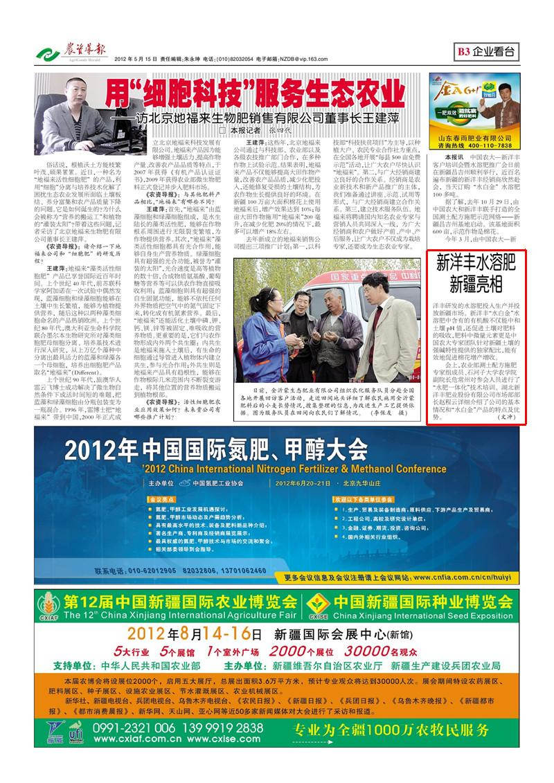 中国农大—杏彩体育客户培训会暨水溶肥推广会日前在新疆昌吉州顺利举行, 近百名遍布新疆的杏彩体育经销商欣然赴会,当天订购“水白金”水溶肥100 多吨。