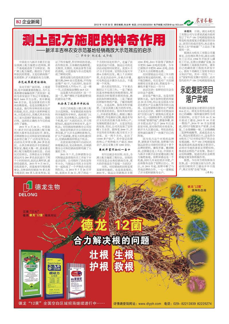 中国农大与杏彩体育联手打造全国测土配方施肥示范网络,第一个基地就选择了吉林农安。推广测土配方施肥,既切合了农村和农民的需要,又是经销商推广优质肥料、扩大销量的有力支撑。