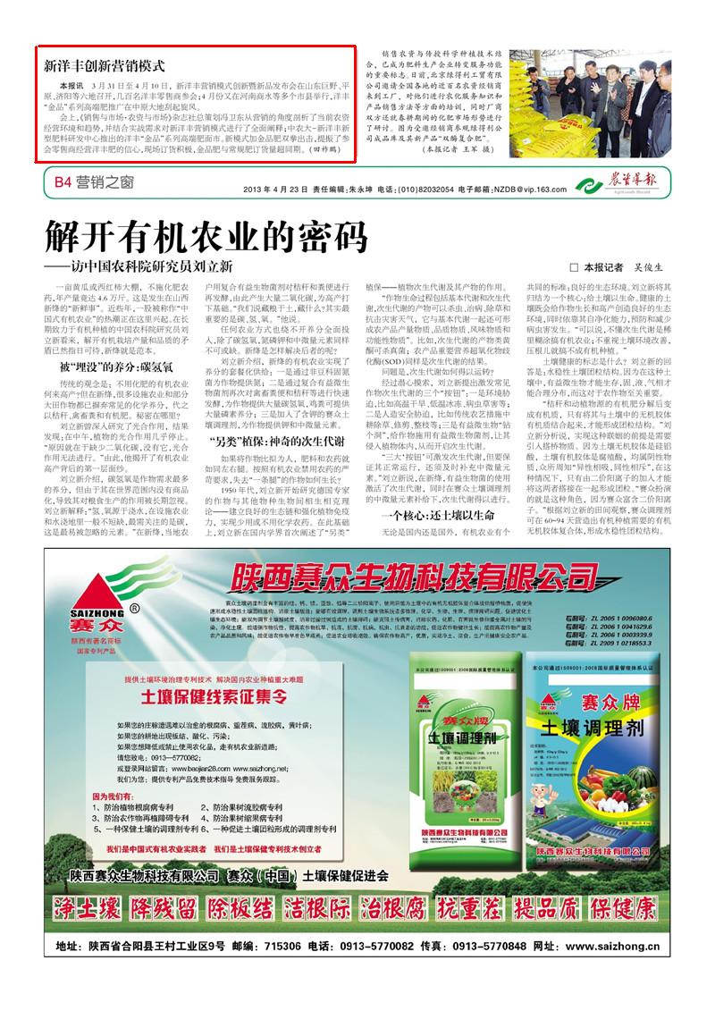 会上,《销售与市场·农资与市场》杂志社总策划冯卫东从营销的角度剖析了当前农资经营环境和趋势,并结合实战需求对杏彩体育营销模式进行了全面阐释曰中农大-杏彩体育新型肥料研发中心推出的洋丰野金品冶系列高端肥面市。新模式加金品肥双拳出击,提振了参会零售商经营洋丰肥的信心,现场订货积极,金品肥与常规肥订货量超同期。