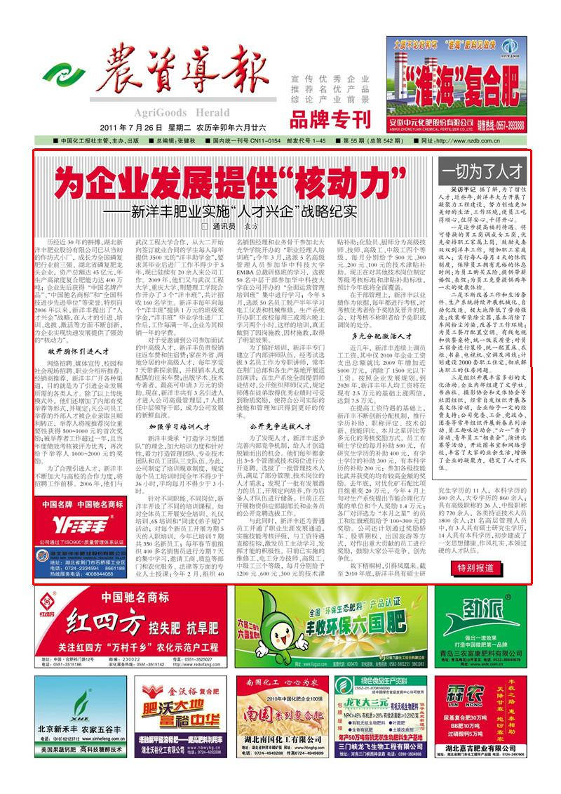 历经近30 年的拼搏,湖北杏彩体育肥业股份有限公司已从当初的作坊式小厂,成长为全国磷复肥行业前三强、湖北省磷复肥龙头企业,资产总额达45 亿元,年生产高浓度复合肥能力达400万吨;企业先后获得“中国名牌产品”、“中国驰名商标”和“全国科技进步先进单位”等荣誉。特别自2006 年以来,杏彩体育提出了“人才兴企”战略,在人才的引进、培训、选拔、激活等方面不断创新,为企业实现快速发展提供了强劲的“核动力”。