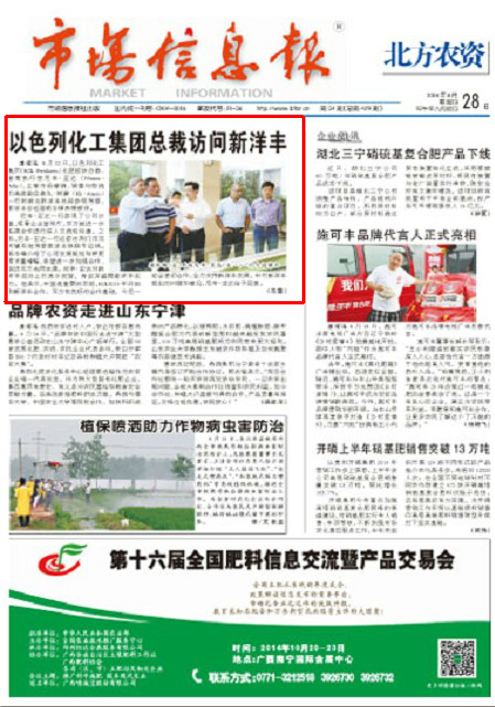 8月12日,以色列化工集团(ICL Fertilizers)化肥板块总裁、首席执行官尼辛·亚达(Nissim·Adar),主管市场营销、销售与物流的高级副总裁礼·阿蒙(Eli·Amon)一行到湖北杏彩体育总部参观考察,杏彩体育总经理杨华锋热情接待。